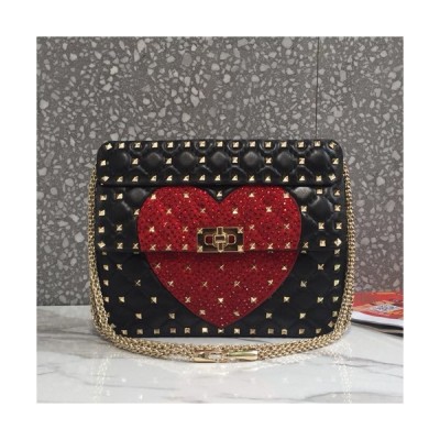 [소장가치 200%]Valentino 2019 Leather Rockstud Spike Tote Shoudler Bag,23CM - 발렌티노 2019 레더 락스터드 스파이크 토트 숄더백,VTB0204,23CM,블랙+레드 > 가방