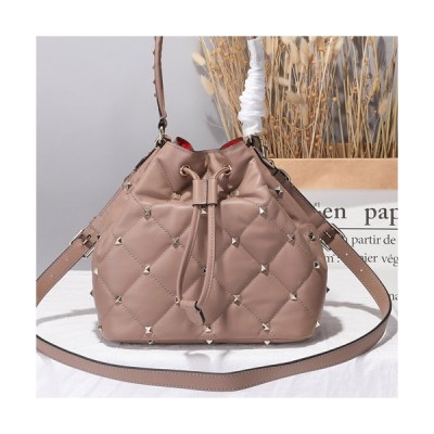 Valentino 2019 Leather Boomstud Spike Bucket Tote Shoudler Bag,23CM - 발렌티노 2019 레더 봄스터드 스파이크 버킷 토트 숄더백, VTB0522,23CM,연핑크 > 가방