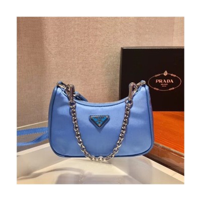 Prada 2020 Nylon Mini Hobo Tote Shoulder Bag,15CM - 프라다 2020 나일론 미니 호보 토트 숄더백,PRAB0116,15cm,스카이블루 > 가방