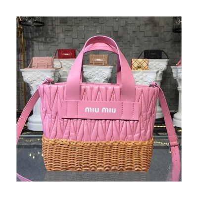 MiuMiu 2019 Nappa Leather and Wicker Bucket Tote Shoulder Bag,25cm - 미우미우 2019 나파 레더 위커 버킷 토트 숄더백,5BA076, MIUB0200 , 25cm,핑크 > 가방