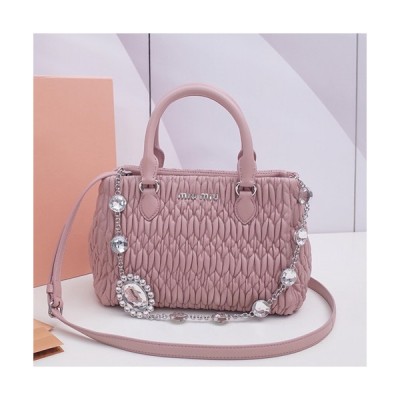 MiuMiu 2019 Matelasse Crystal Tote Shoulder Bag,24cm - 미우미우 2019 마틀라세 크리스탈 토트 숄더백,5BA067 , MIUB0042, 24cm,핑크