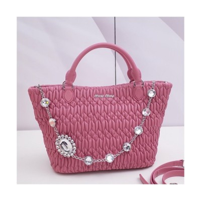MiuMiu 2019 Matelasse Crystal Tote Shoulder Bag,28cm - 미우미우 2019 마틀라세 크리스탈 토트 숄더백,5BE896 , MIUB0037, 28cm,핑크 > 가방