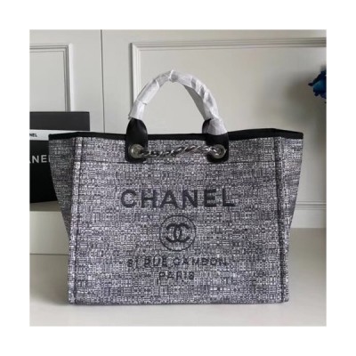 Chanel 2018 Canvas Deauville Tote Shoulder Bag,39CM - 샤넬 2018 캔버스 도빌 토트 숄더백 CHAB0288,39CM,그레이 > 가방
