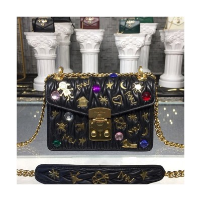 MiuMiu 2019 Matelasse Doodle Chain Shoulder Cross Bag,20cm - 미우미우 2019 마틀라세 두들 체인 숄더 크로스백,5BD081, MIUB0174 , 20cm,블랙 > 가방
