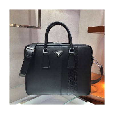 • [프라다] Prada 2020 Men's Leather Satchel Bag,36cm - 프라다 2020 남서용 레더 서류가방,36cm,PRAB0220,블랙