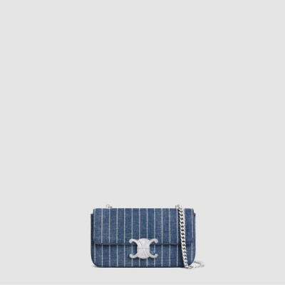 • 셀린느 여성 클로드 스트라이프 스트라스 체인 숄더백 - Celine Womens Claude Stripe Strass Chain Shoulder Bag